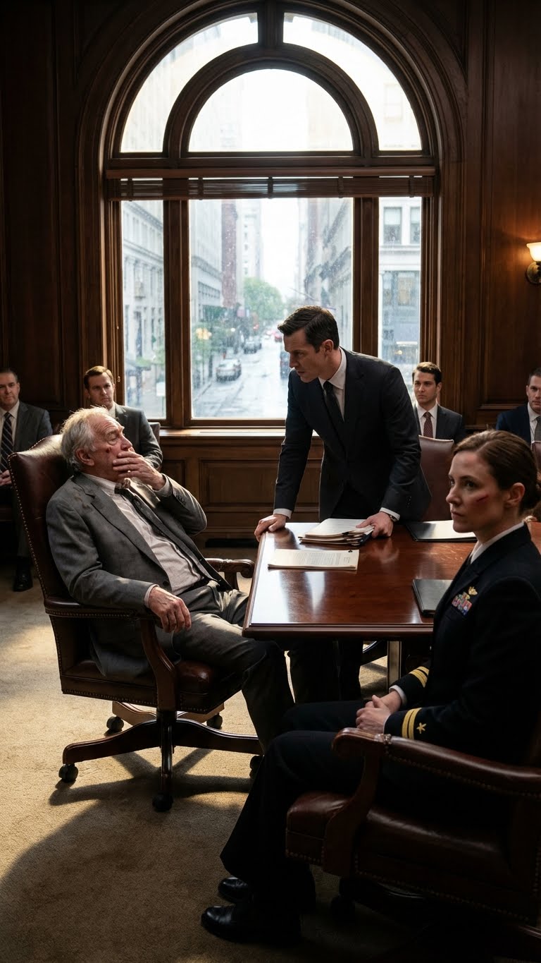 De stilte in de vergaderzaal van Harper & Dunn was allesbehalve vredig; het was de verstikkende stilte van een ingehouden adem vlak voor een auto-ongeluk. Ik wreef nog steeds over de brandende rode striem op mijn wang, de hitte van de klap straalde door mijn kaak, toen de advocaat, meneer Callahan , de zware leren map met een weloverwogen, definitieve klap dichtdeed.