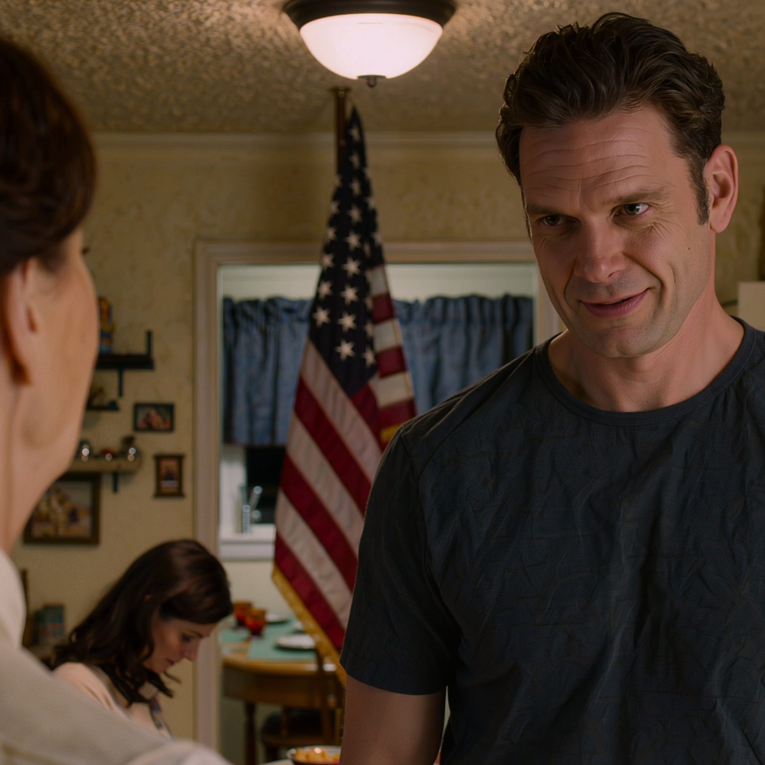 Chad stormde midden in de introductie van de manager binnen, precies zoals ik al wist dat hij zou doen. Te laat, luidruchtig, ervan overtuigd dat de wereld even stil zou staan totdat hij zich had geïnstalleerd. Zijn baseballpet zat diep over zijn ogen getrokken, zijn kaak strak gespannen, zijn oude werklaarzen stampten alsof ze de vloer bezaten. Amanda liep achter hem aan, klein en ineengedoken, haar ogen op de grond gericht.