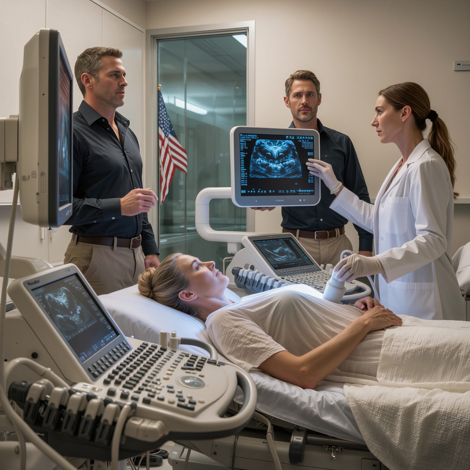 De lucht in de echokamer in Irvine, Californië, was perfect gefilterd en steriel, met een lichte geur van ozon en dure handdesinfectie. Buiten scheen de meedogenloze Zuid-Californische zon, die de glazen torens van Orange County verschroeide, maar binnen was de ruimte een cocon van gedempt blauw licht en zachte, mechanische zoemgeluiden. Ik lag op de gewatteerde tafel, de geleidende gel voelde als een verrassende, koude schok op mijn huid terwijl de transducer ritmische, vloeiende bewegingen over mijn buik maakte.