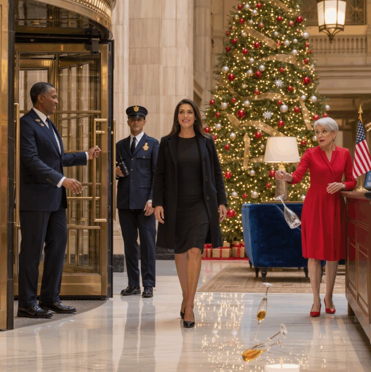 Achter haar, als het middelpunt van de baan die ze altijd was geweest, stond mijn moeder. Margaret Ortiz droeg haar kerstharnas: een dieprode jurk, zilverkleurig haar in een elegante knot, lippen in dezelfde kleur als haar jurk. Een kleine kring familieleden en vrienden om haar heen lachte iets te hard. Ze stond nooit in een groep. Ze was altijd de baas.