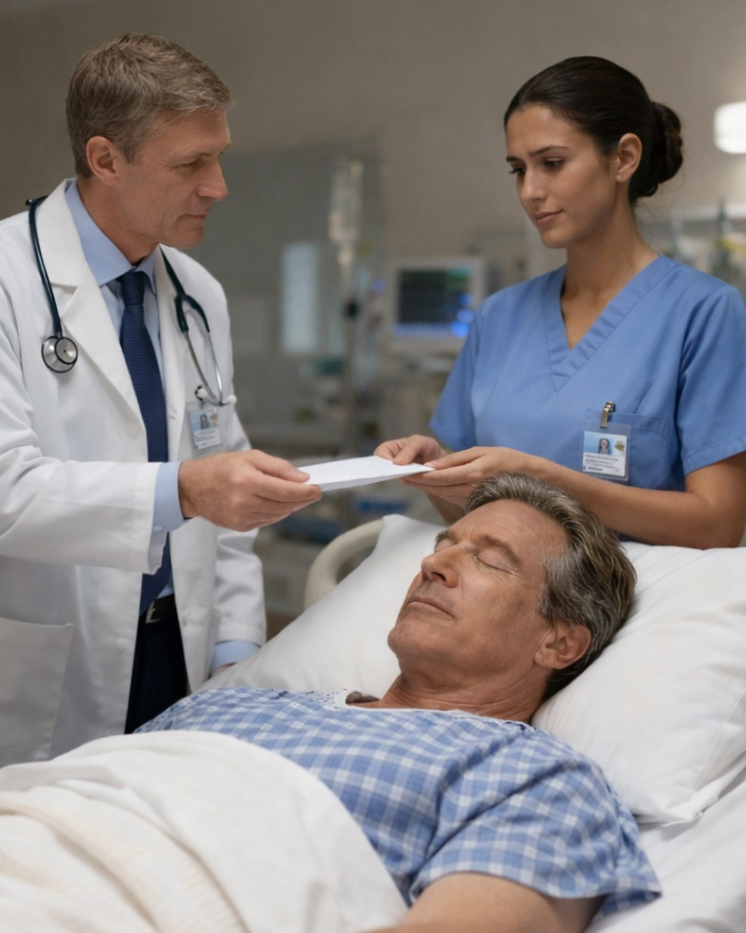 Dertig minuten later werd hij naar de herstelkamer gereden, zijn lichaam slap maar zijn geest vlijmscherp. Door halfgesloten ogen keek hij toe hoe verpleegster Torres – haar badge glinsterde in het felle licht – nerveus met een envelopje in haar zak speelde. Camille verscheen in de deuropening, haar donkere haar onberispelijk, haar ogen schoten heen en weer tussen Gordon en de gang.
