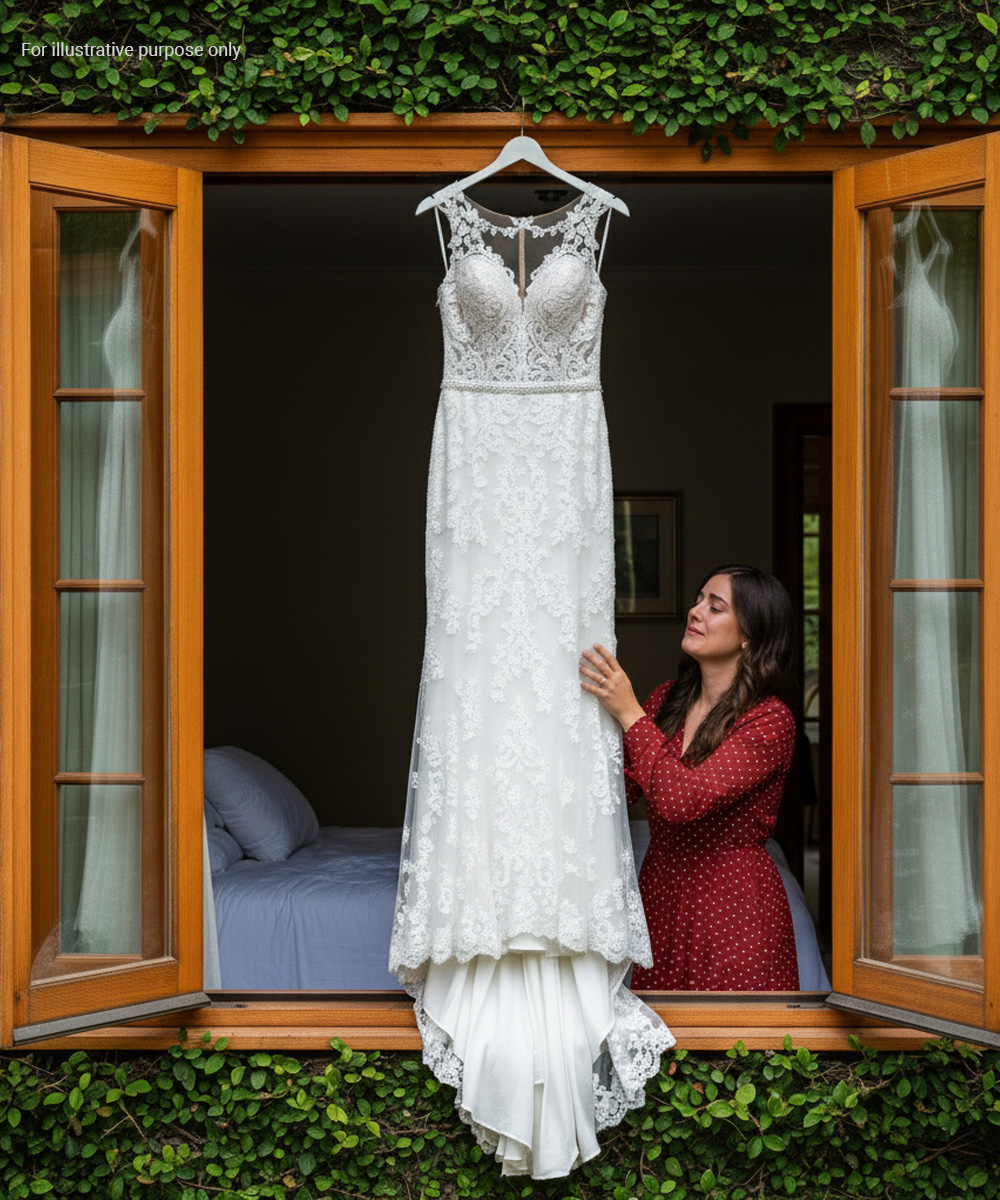 Er lag een trouwjurk in. Eenvoudig maar elegant – ivoorkleurig satijn met een kanten lijfje, onmiskenbaar uit de jaren 90. Ik herkende hem meteen. Het was de jurk van mijn moeder.