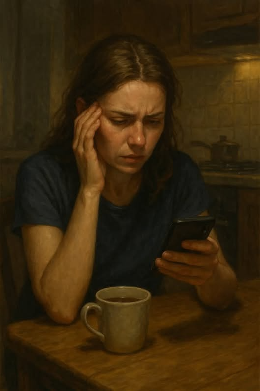 Ik liep naar de keuken, vulde het pannetje met water, deed er koffie en een snufje zout in – hij houdt ervan op die manier. Ik zette het op het fornuis. We hebben een koffiezetapparaat, maar hij zweert bij de ouderwetse manier. Het is geen moeite als het hem blij maakt.
