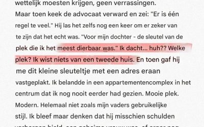 Ze stond op en liep naar het raam. De stad beneden leefde zijn eigen leven, onverschillig voor andermans drama. Vijfhonderdduizend. Voor haar was dat een bedrag dat ze in minder dan twee maanden verdiende. Ze had het gewoon kunnen overmaken. Het probleem in één handomdraai oplossen.