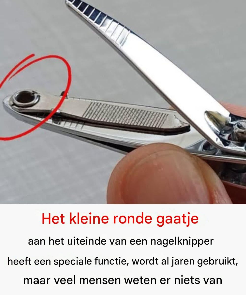 Het lijkt misschien een willekeurig onderdeel van het ontwerp, maar in werkelijkheid heeft dat kleine gaatje een cruciale functie: het maakt het knippen van nagels gemakkelijker, veiliger en comfortabeler, vooral voor ouderen.