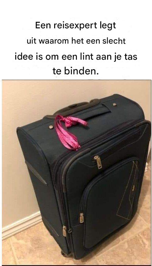 Een reisexpert legt uit waarom het een slecht idee is om een lintje aan je tas te binden.