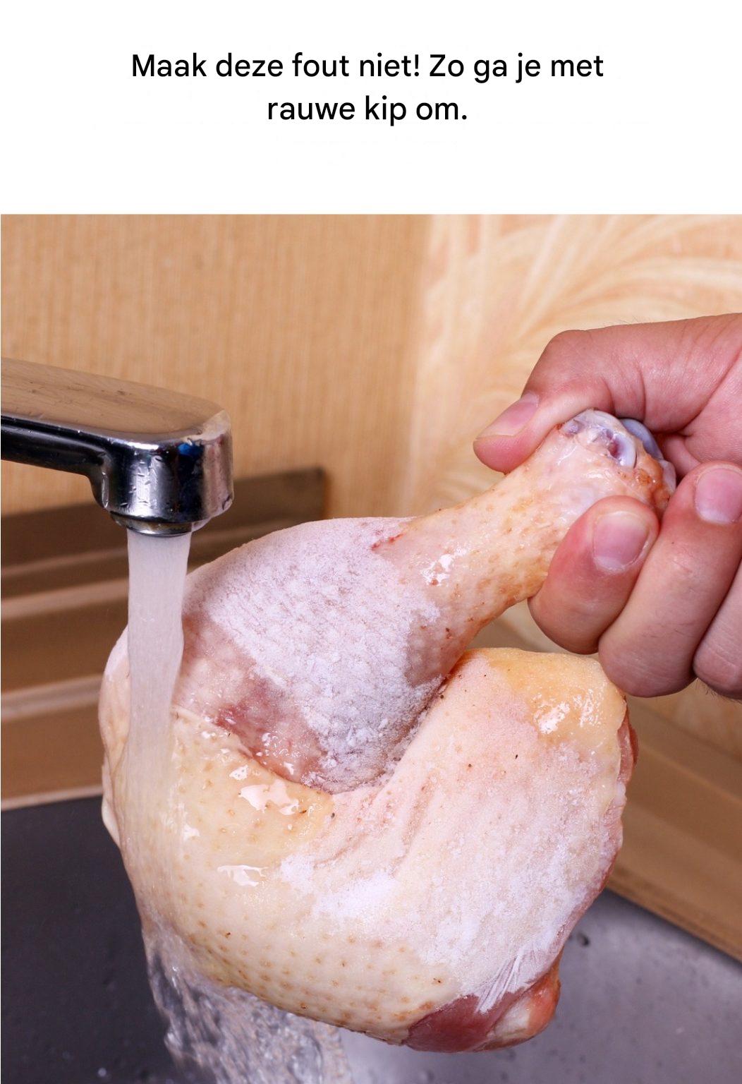 Wanneer je rauwe kip wast, spat er water dat schadelijke bacteriën zoals Salmonella of Campylobacter kan meenemen op aanrechtbladen, borden en zelfs ander voedsel. Zelfs een klein druppeltje water kan een bron van infectie worden, wat ernstige gezondheidsproblemen veroorzaakt voor jou en je dierbaren.