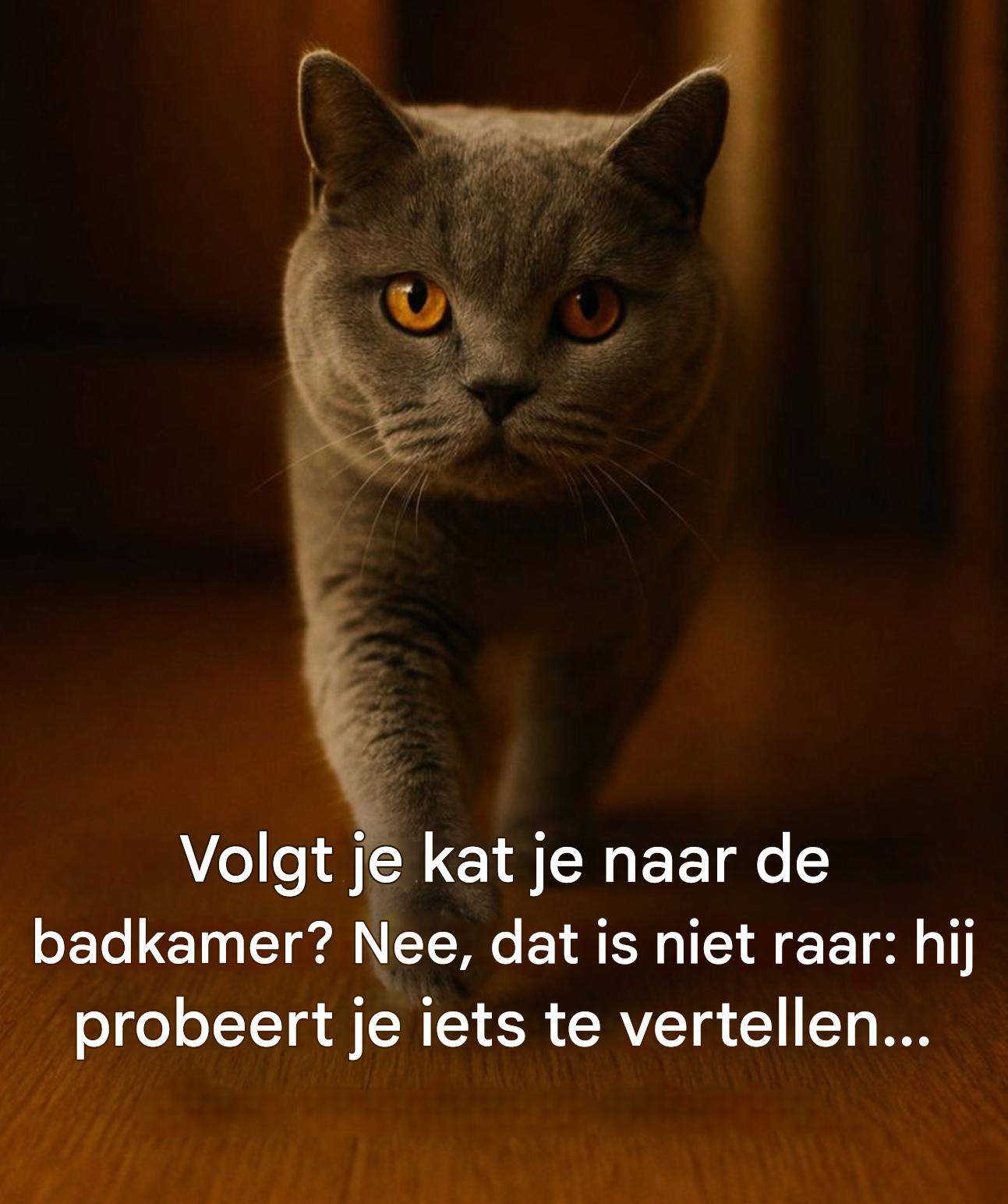 Zelfs als huisdier blijft een kat een dier dat zich laat leiden door zijn instincten. Jouw huis is zijn territorium en elke kamer telt, inclusief de badkamer. Door je overal te volgen, zorgt hij ervoor dat alles in orde is en dat niets zijn vertrouwde omgeving verstoort. Jij bent een integraal onderdeel van dit territorium, bijna als een kostbaar bezit dat bewaakt moet worden.