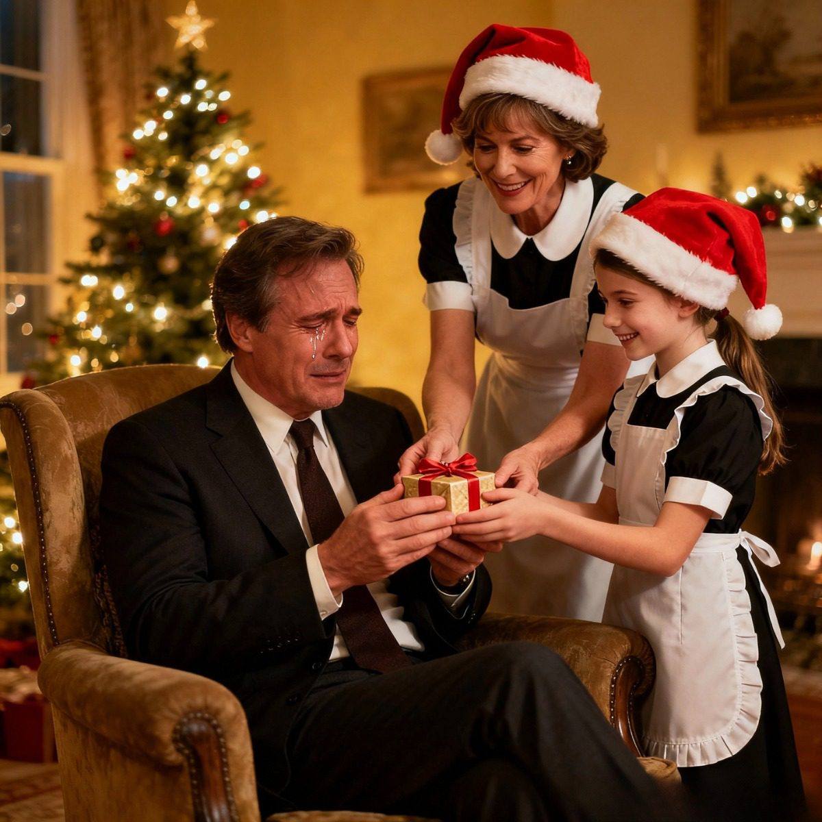 De vier meter hoge kerstboom die naast hem stond te stralen, was geen symbool van feestelijkheid, maar een herinnering dat luxe geen vervanging kan zijn voor gedeelde betekenis of emotionele warmte.