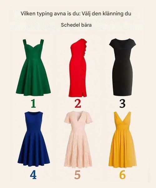 Mode draait niet alleen om stof en kleur – het is ook een weerspiegeling van persoonlijkheid, zelfvertrouwen en innerlijke energie. De jurk waar je je van nature toe aangetrokken voelt, zegt veel over wie je bent, hoe je in het leven staat en wat voor uitstraling je hebt. Neem even de tijd, kijk naar de zes jurken op de foto en kies de jurk die je het liefst zou dragen.