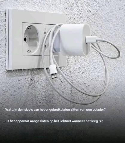 Een aangesloten oplader verbruikt altijd stroom, zelfs als er geen apparaten zijn aangesloten.