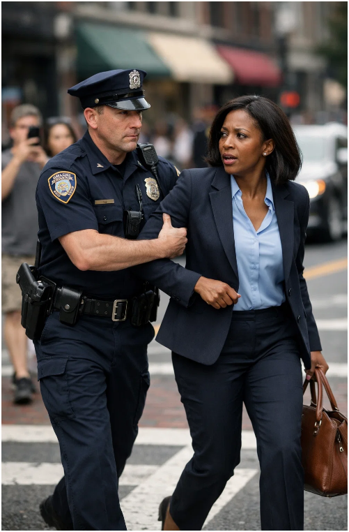 Een zwarte vrouw, onberispelijk gekleed, een perfect gesneden blazer, hakken die met stille zelfverzekerdheid de stoep raakten. Telefoon in de hand. Leren tas aan haar zijde. Ze bewoog zich alsof ze precies wist wie ze was – en waar ze thuishoorde.