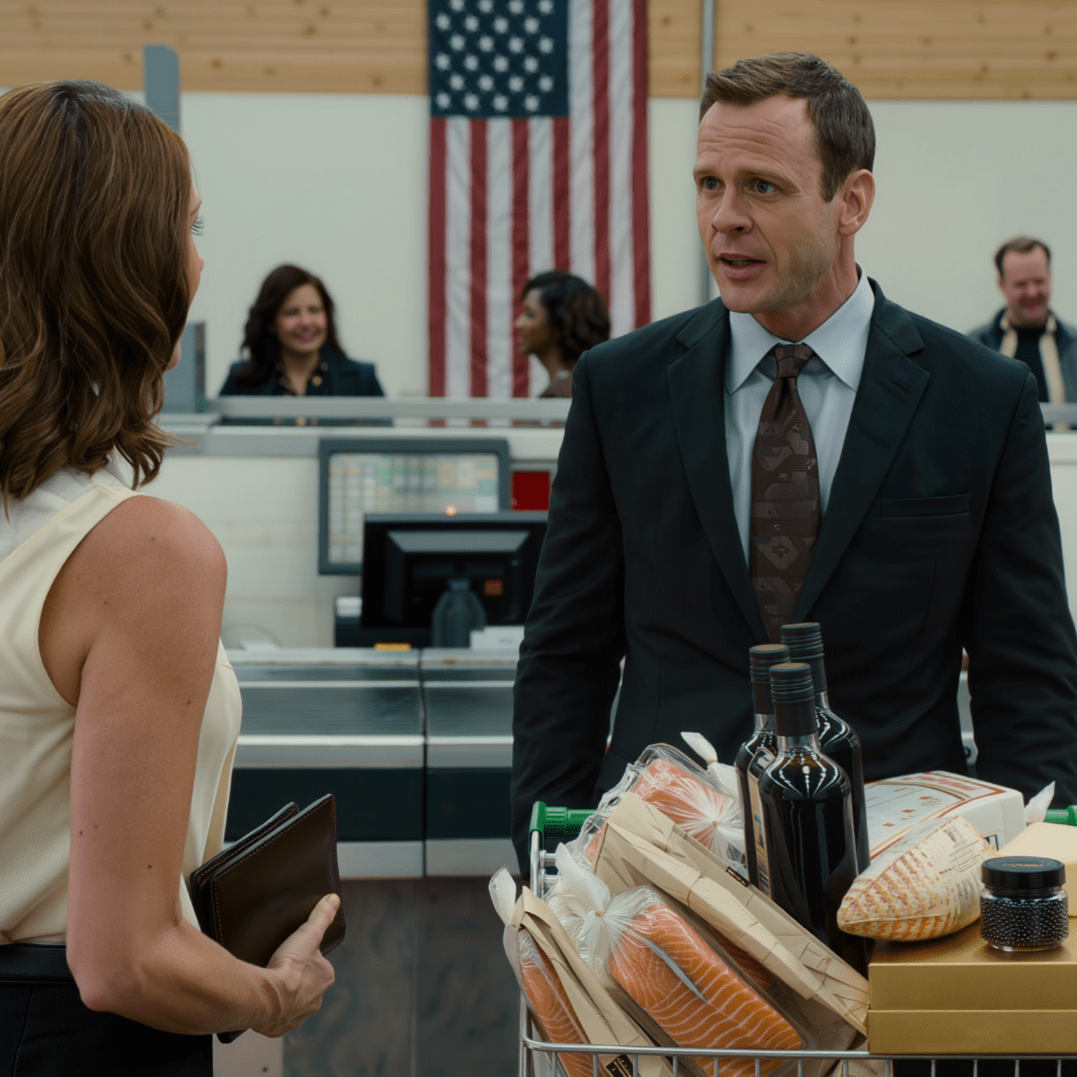 Eerst kwam gerookte zalm in keurig vacuümverpakte porties, daarna een Franse brie verpakt in vetvrij papier, vervolgens twee flessen oude balsamicoazijn die meer kostten dan mijn wekelijkse bloemen. Ze voegde er truffelolie, Medjool dadels, ambachtelijke crackers, olijven gevuld met citroenschil, een blik geïmporteerde sardines met een prijskaartje zo absurd dat ik eerst dacht dat het verkeerd was gelabeld, en een gouden doos handgerolde chocolaatjes aan toe, die ze met beide handen eerbiedig in de winkelwagen legde, als een kerkvrijwilliger die de communie uitdeelt.