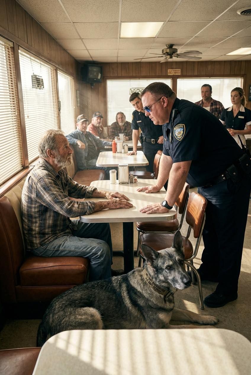 De serveerster, een vrouw genaamd Carol met vermoeide ogen en een zachte stem, glimlachte toen ze Atlas’ halsband zag. « Koffie? » vroeg ze.