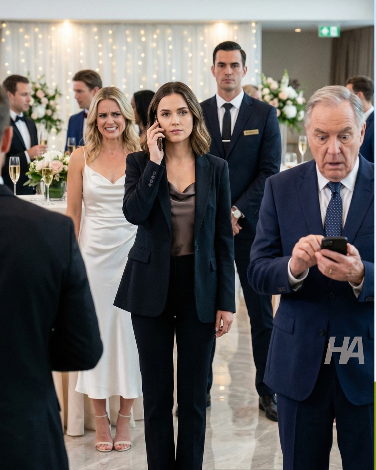Het gelach in de lobby verstomt tot een ijzige stilte, als glas dat besluit te breken.