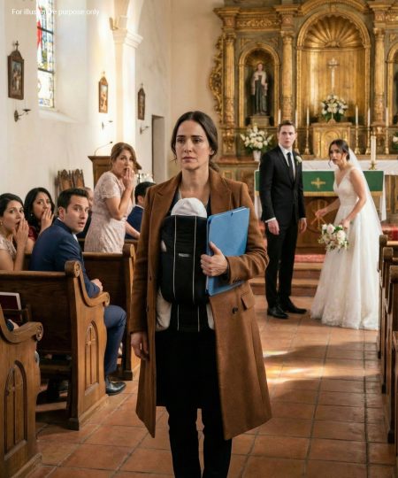 Zes weken nadat mijn man mij en onze pasgeboren baby midden in een sneeuwstorm in de steek had gelaten, liep ik zijn bruiloft binnen met het enige wat hij nooit had gedacht te zullen hebben.