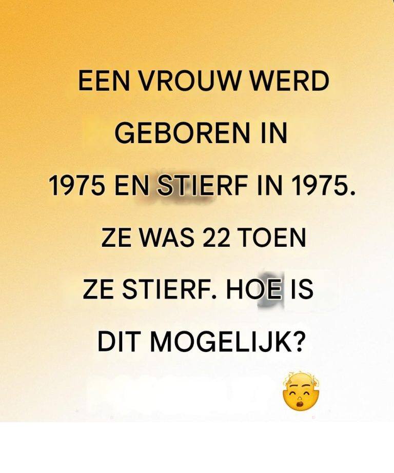 Op het eerste gezicht klinkt de informatie dat een vrouw in 1975 geboren is en op 22-jarige leeftijd is overleden als een raadsel dat alle logica tart.