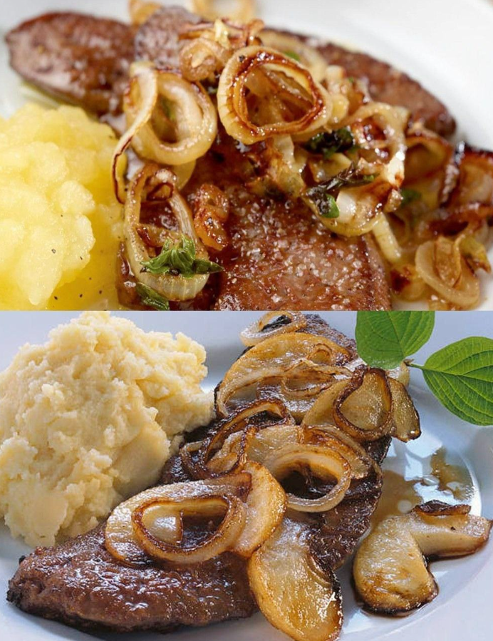 Spoel de lever af met koud water en dep hem droog. Schil de ui en snijd hem in ringen. Spoel de saliebladeren af en dep droog. Kruid de lever met zout en peper en bestrooi het fijn met bloem.